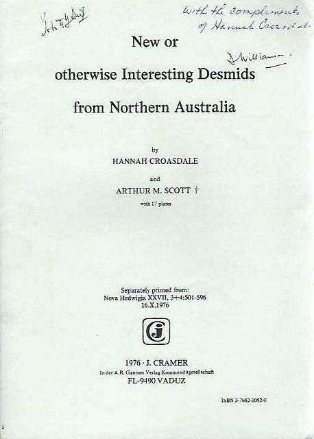 Croasdale, H., & Scott, A.M. New or otherwise Interesting Desmids from Northern Australia.