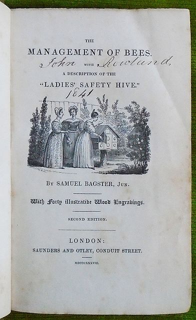 Bagster, Samuel. The Management of Bees. With a description of the “Ladies’ Safety Hive”. 2nd. Ed. Pub. Saunders and Otley, London. 1838